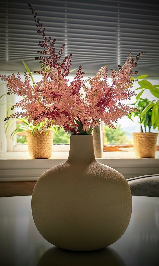 Når termometeret var på plass, og knekkebrøda ferdigsteikt, var det dei grøne fingrane det byrja klø i. Dvs. eg ynskjer sterkt å ha grøne fingrar, men bør moglegvis innsjå at genet kanskje ikkje er tilstades… Men eg prøver og feilar så godt eg kan. I dag var eg ute å henta noko i hagen eg kunne ha i eit par vasar på kjøkenet…