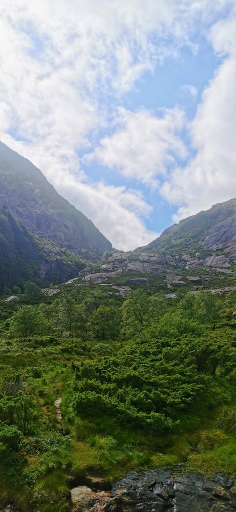 No var eg komen inn i Fagerdalen, og måtte bestemma meg for om eg skulle enda turen der og sitja å sjå på to karar som kom opp og gjorde seg klar til å klatra i fjellet, eller gå vidare?