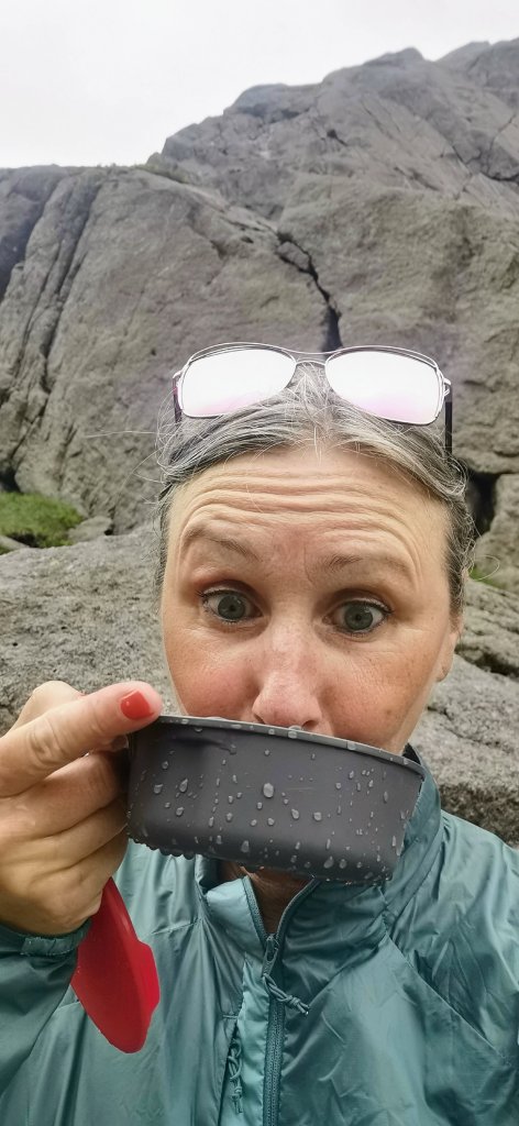 Så i dag vart det fjelltur 😀 Med tanke på kor raskt det skifta frå sol og sommer til lyn, torden og regn i går, la eg turen til Eikedalen. Der kan ein gå ganske langt før ein blir høgste punktet i terrenget, og det er nok av trer, og seinare steinar, å huka seg ned bak.