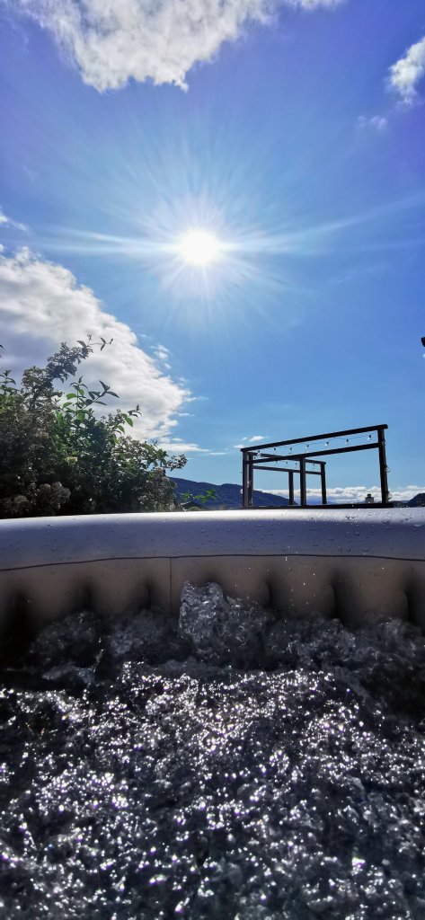 Men fyttikatta det vart varmt 🔥 🔥 For ikkje berre haldt vatnet +40 grader – sola bestemte seg brått for å skina frå blå himmel. Brått befann eg meg på Costa del Dønhaugstølen🌞 Ein halvtime i badestampen med bobler på var bading nok – og eg flytta meg rett frå stampen til solstolen 🌞🌞