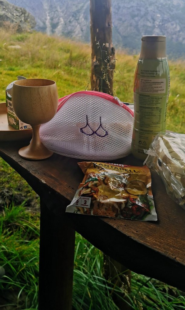 Vi åt opp rubbel og bit. Det var greit å ha litt å gå på hvis heimturen skulle bli like lang som sist. Sjokoladen til dessert vart og verande i sekken som nødrasjon 😉