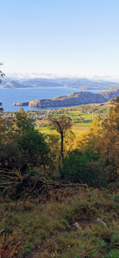 Vi burde vel brukt litt meir tid på å resonnera rundt kor i verda vi var… Vi såg tross alt rett ned i Herøysundet frå Manen. No hadde vi gått utover ei heil fjellside og hadde passert Herøysundet for lenge sida – korleis trudde vi denne stien skulle føra oss ned til Herøysundet???