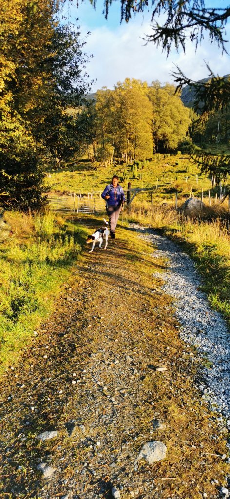 Vi lo litt i byrjinga av turen då eg akka meg over å ha gløymt å ta med hovudlykt. No tok vi oss ikkje tid til meir pausar på vegen, no fekk vi peisa på så vi kom oss ned før det byrja bli mørkt.