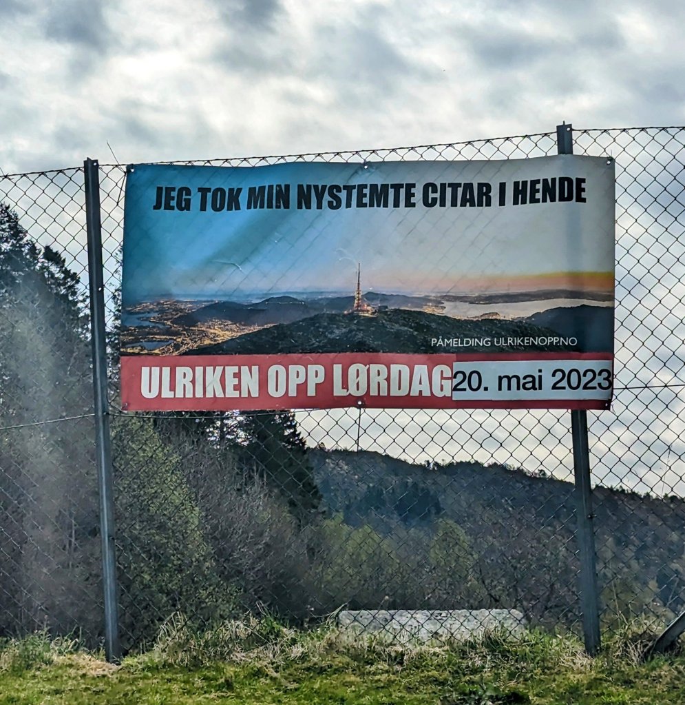 Det var omtrent her, medan eg krĂžka meg oppover med tunga slepande langs trappetrinna og svetten skvatt rundt meg, att eg nett lyfta pĂ„ eit augnelok og sĂ„g rett pĂ„ ein uskedeling! Eg fekk meg ein liten pust i bakken der, og det er jo greit at nokon kan gĂ„ god for at eg faktisk har gĂ„tt opp trappene til Ulriken đ