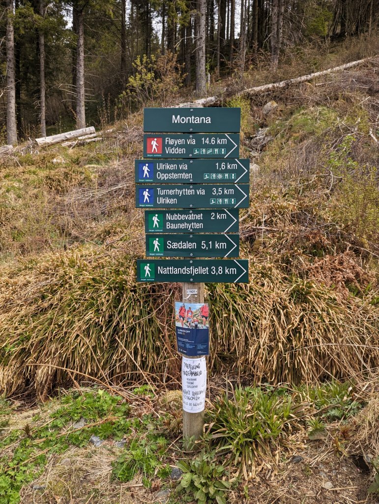 Usikker pÄ kva det heiter der vi starta turen, men vi parkerte litt nedanfor Montana Vandreheim. DerifrÄ gjekk vi litt opp gata og kom inn pÄ ein grusveg.