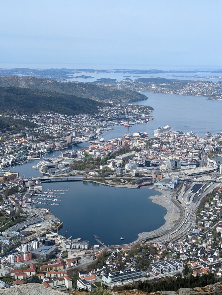 Endeleg kom vi oss opp og kunne nyta utsikten over Bergen by…