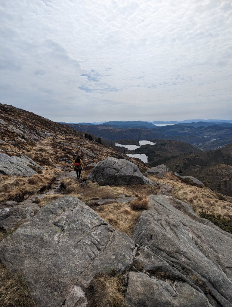 Det gjekk sakte, men sikkert oppover. Eg hĂ„pa det sĂ„g ut som om eg hadde ein stor, tung sekk pĂ„ ryggen – i verkelegheita vog den sikkert knappe 1kg…