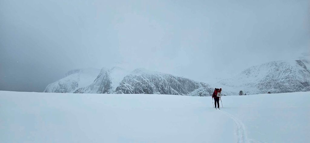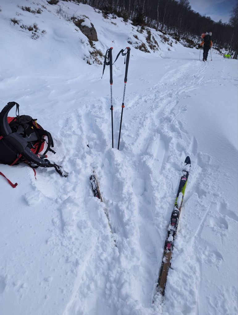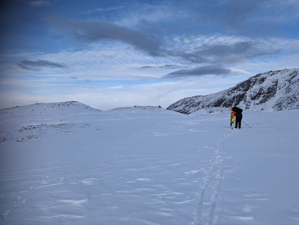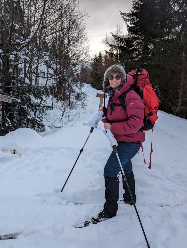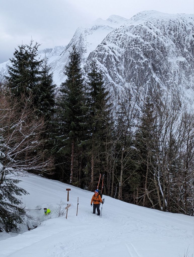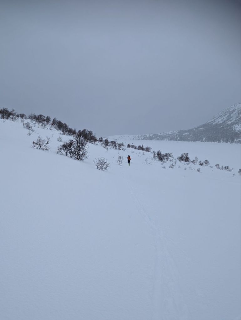 Eg kryssa både bein og fingrar for at det var køyrt opp snøscooterspor – og takk og pris, det var det👍 Eg må vel vedgå at eg hadde måtta tatt i bruk «det er ingen skam og snu» hvis eg hadde måtta tråkka spor opp fjellet.