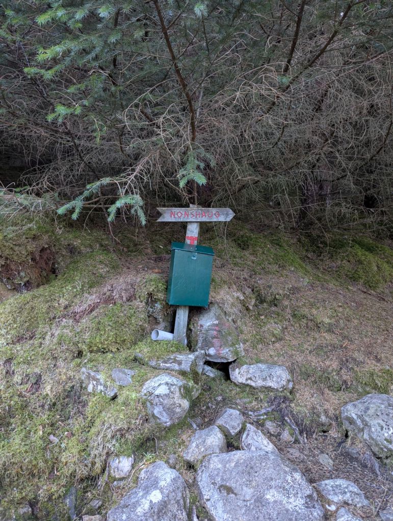 Eg trur ingen av oss eigentleg tenkte tanken på at vi skulle gå til Nonshaug i den vinden som var i dag, men eit stykke i skogen kunne vi jo gå. Kanskje vi kom i le ein plass og kunne eta nista???