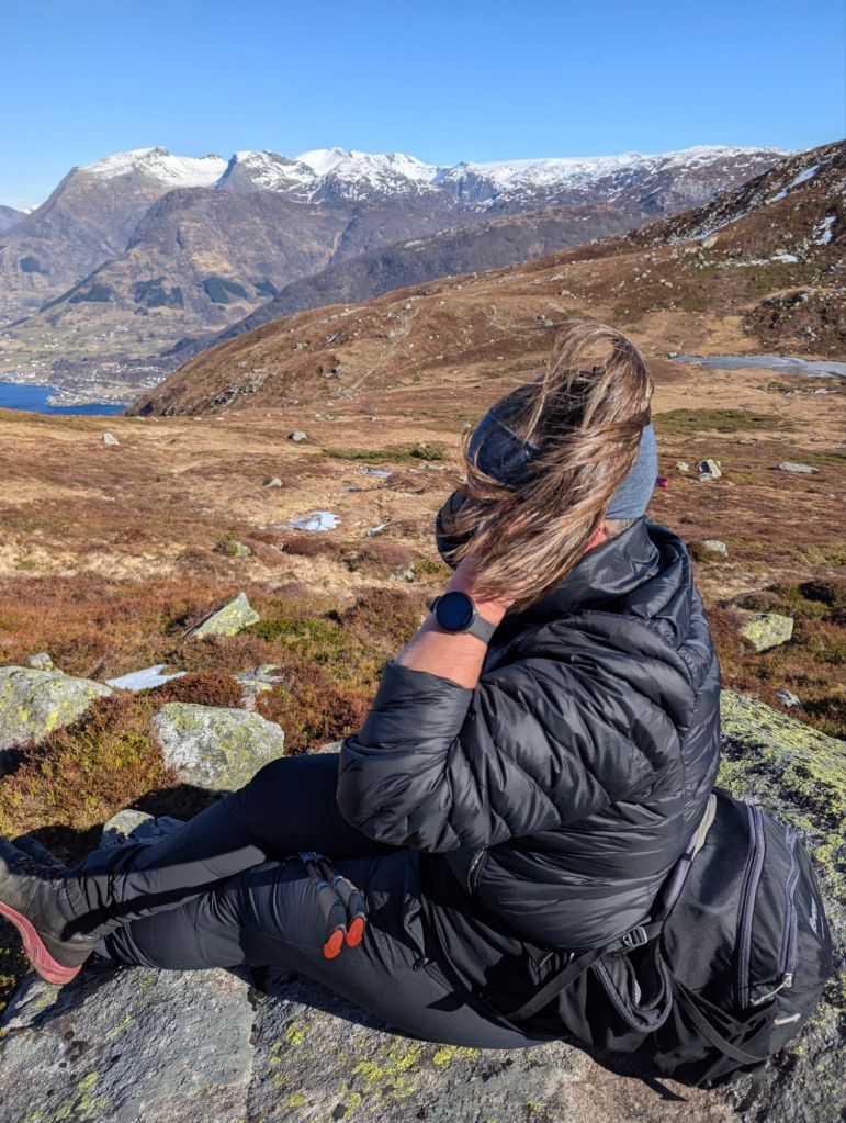Kjem vi til å gå over fjellet igjen?? Heilt sikkert, men ikkje om det er meldt vind🤣🤣 Har vi lært noko i dag?? Vi er einige om at vi lært at passerer vi snøfonna på stien til Nonshaug att, så blir det ny tur over fjellet til Uskedalen….