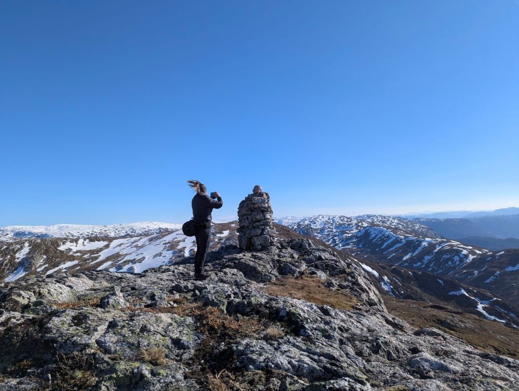 Eg har igrunnen sakna litt å skriva bobleinnlegg, men det blir så fort gløymt når det er så mykje anna ein skal gjera😀 Men i går fekk eg melding frå Ann Irene om eg ville vera med til Kviteggjo på tur i dag – så det tenkte eg at kunne bli eit fint lite «blåsvekk» innlegg…..