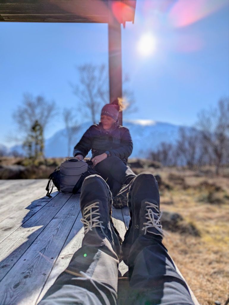 Ei god pause hadde vi her, før vi måtte gå den siste, kjedelege stien frå Storhaug og heim. Ja, for akkurat den turen er ingen favoritt hos nokon av oss. Men heim måtte vi jo😃